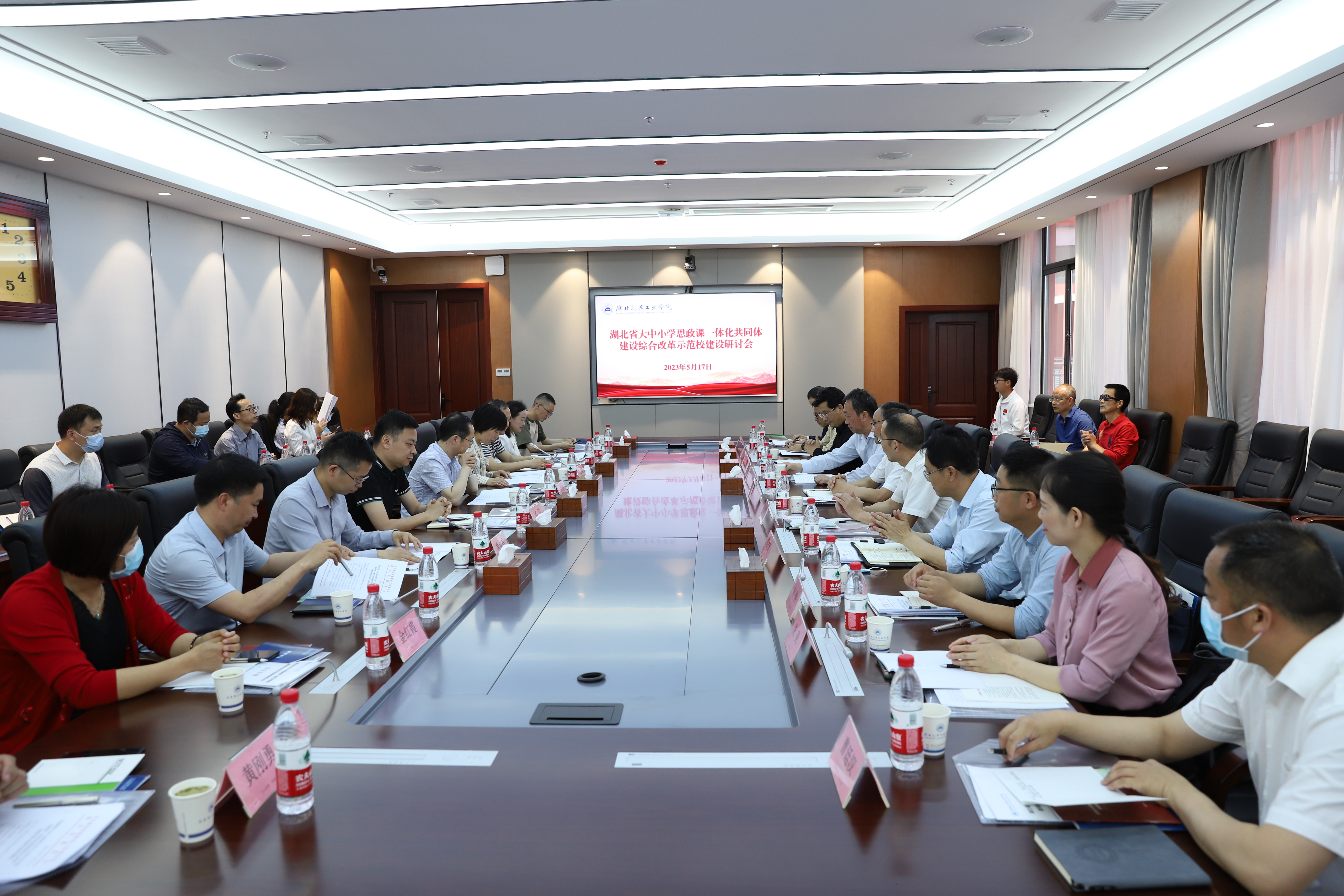 5月17日,湖北省大中小学思政课一体化共同体建设综合改革示范校建设研讨会在学校产教大楼三楼会议室举行。校党委副书记李涛,党委常委、副校长高刃出席会议。九一制作工厂免费、科技学院以及十堰市第一高级中学、十堰市车城高级中学、郧西县教育局、郧西一中、竹山县教育局和竹山县中小学校等共同体建设单位负责人参加会议。会议由党委常委、副校长张红霞主持。