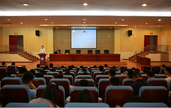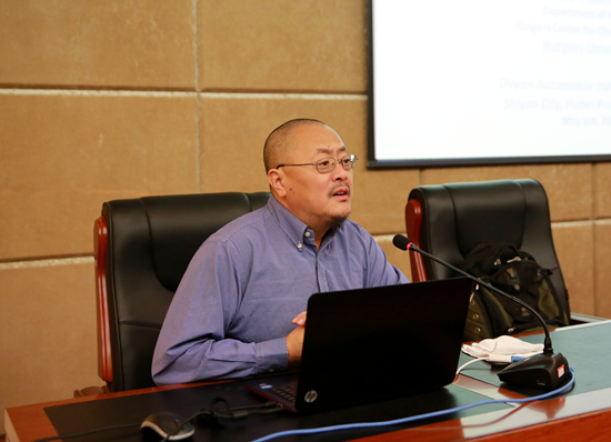 本网讯(文杨飞/图 杜鹏)5月8日下午,美国罗格斯大学中国研究中心主任刘迅教授做客我校东风讲坛第三十二讲,在逸夫图书馆报告厅作了主题为《诗—书—琴—园:清末民初南阳全真道教主领与眷顾的精英艺术》学术讲座。讲座由校党委副书记、武当文化研究与传播中心主任杨立志教授主持。人文学院、外国语学院100余名师生参加讲座。