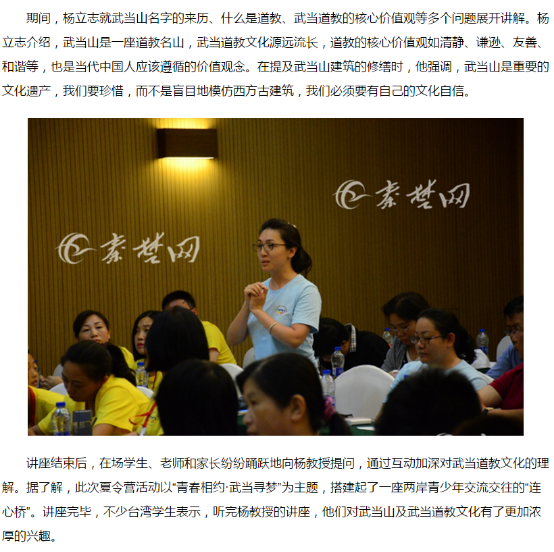 【秦楚网】杨立志为鄂台夏令营讲解武当文化