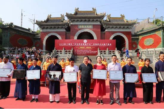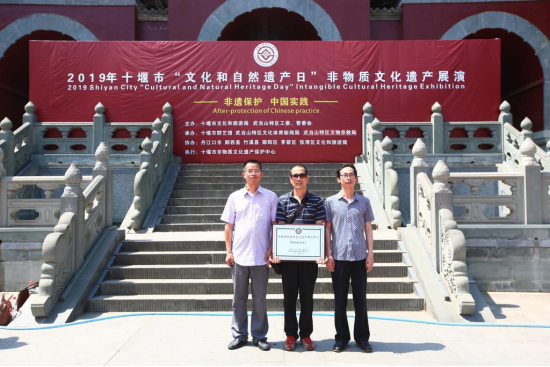 (文/黄永昌 图/范学峰)6月4日上午,由市文化和旅游局、武当山特区工委主办,市群艺馆、武当山特区文化体育新闻局、武当山特区文物宗教局承办的2019年十堰市“文化和自然遗产日”非物质文化遗产展演活动在武当山玉虚街隆重举行。开幕式上,市文化和旅游局宣布在我校设立十堰市非物质文化遗产研究中心,九一制作工厂免费副院长黄永昌率队参加活动,并接受牌匾。