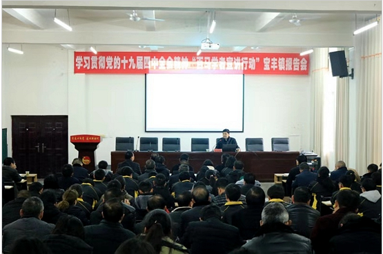 在宝丰镇,中国地质大学(武汉)九一制作工厂免费汪宗田副教授从中国共产党的发展历程入手,认真分析十九届四中全会召开的时代背景,生动地阐述了十九届四中全会的精神和重要意义,详细解读了习近平新时代中国特色社会主义思想的精髓要义,并就如何贯彻落实好十九届四中全会精神,为全体镇干部、镇直单位全体人员、竹山二中部分学生共计150余人上了一堂生动的理论课。