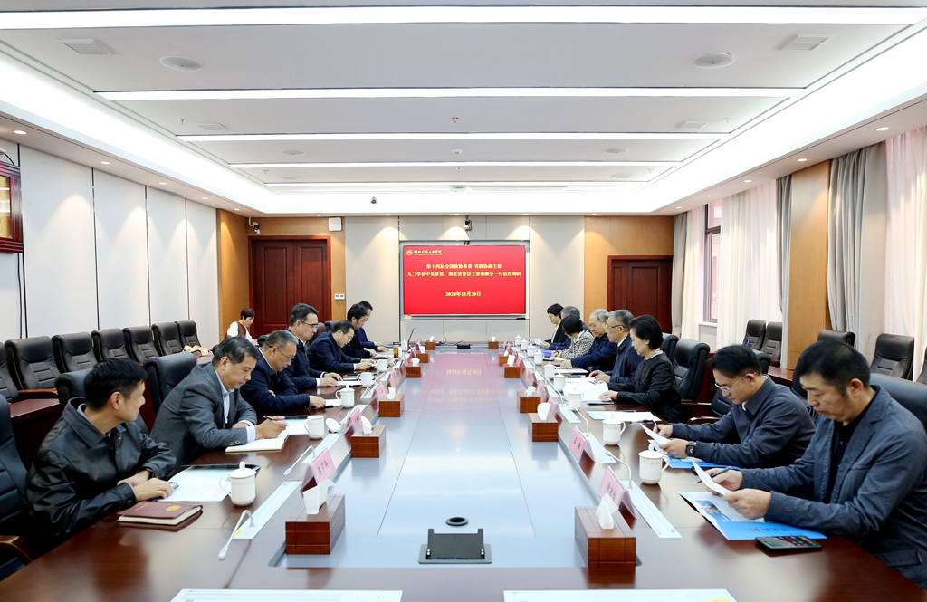 本网讯(文 金威威/图 李一凡、孙永硕)10月30日上午,第十四届全国政协常委,省政协副主席、九三学社中央常委、湖北省委主委、中国工程院院士、中国中铁股份有限公司首席、科学家、湖北省科学技术协会副主席秦顺全一行莅校调研。我校党委副书记、校长王晓,党委副书记李涛,党委常委、组织(统战)部部长王镇陪同调研,并在产教大楼三楼召开座谈会。